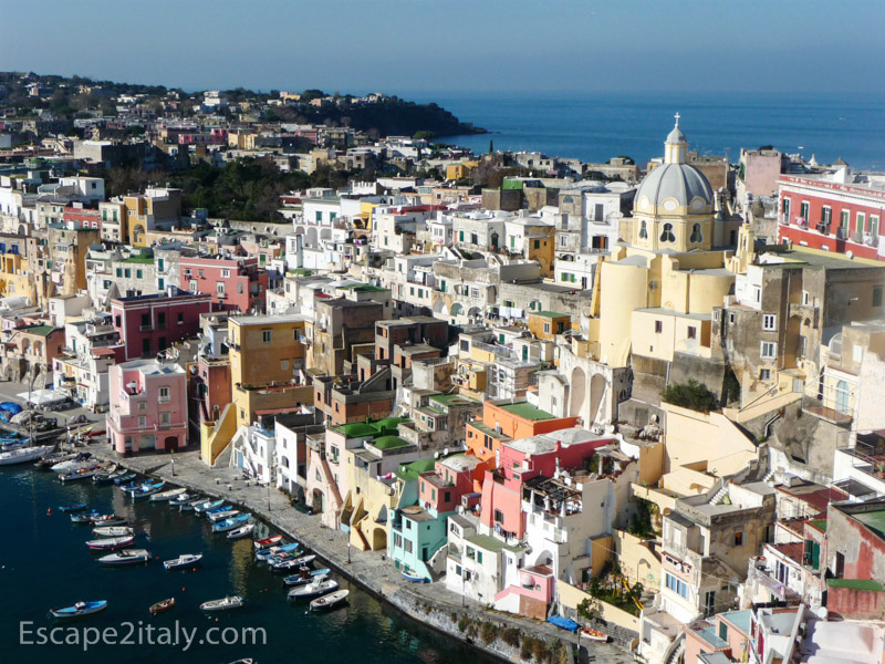 Если частный катер: ко всем пешеходным открытиям на острове Прочида добавляется немного легкости от купания в красивых водах вокруг острова Прочида и обеда в самом простом, но очень романтичном ресторанчике, где готовят только что выловленную рыбу.
